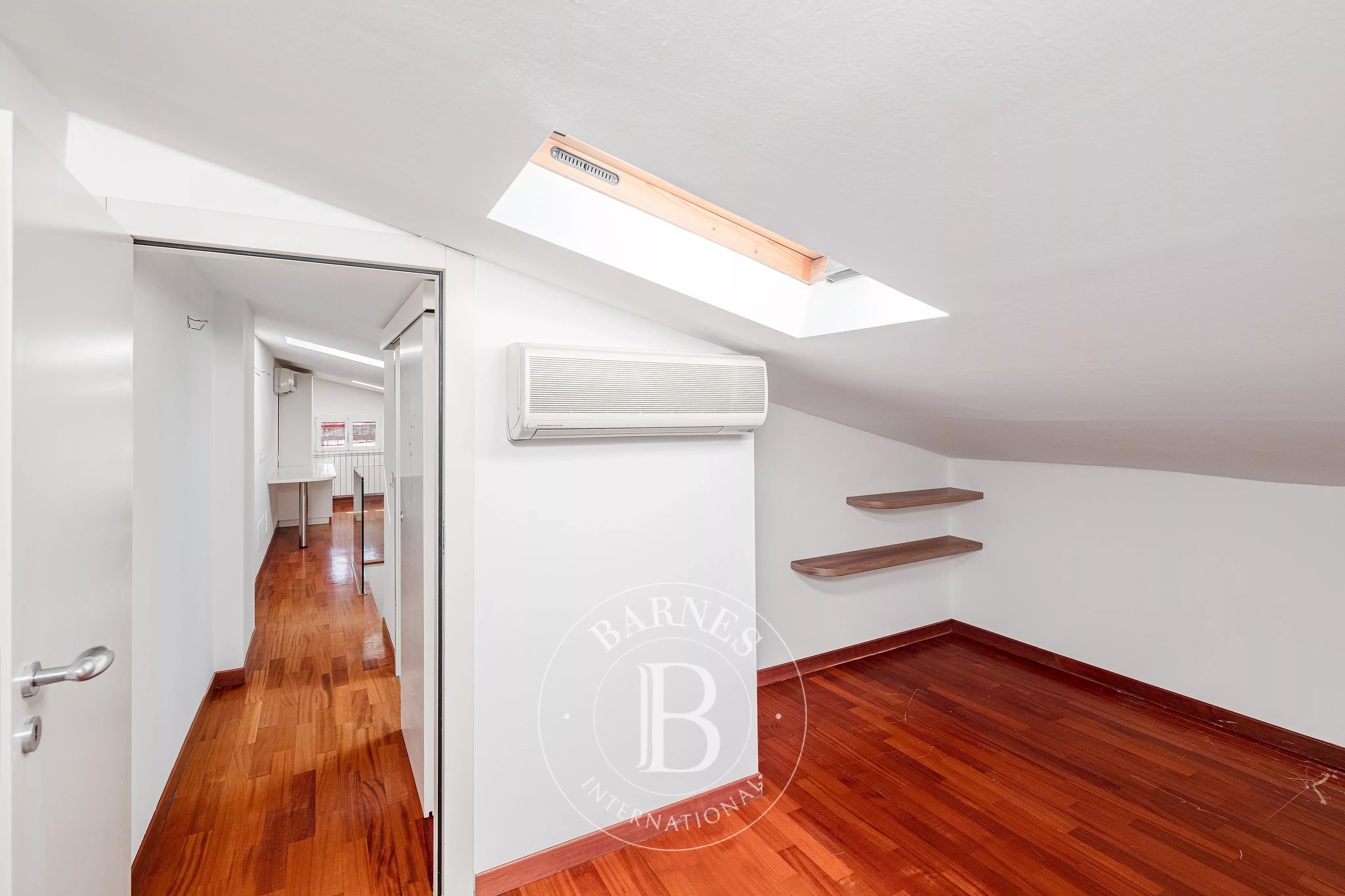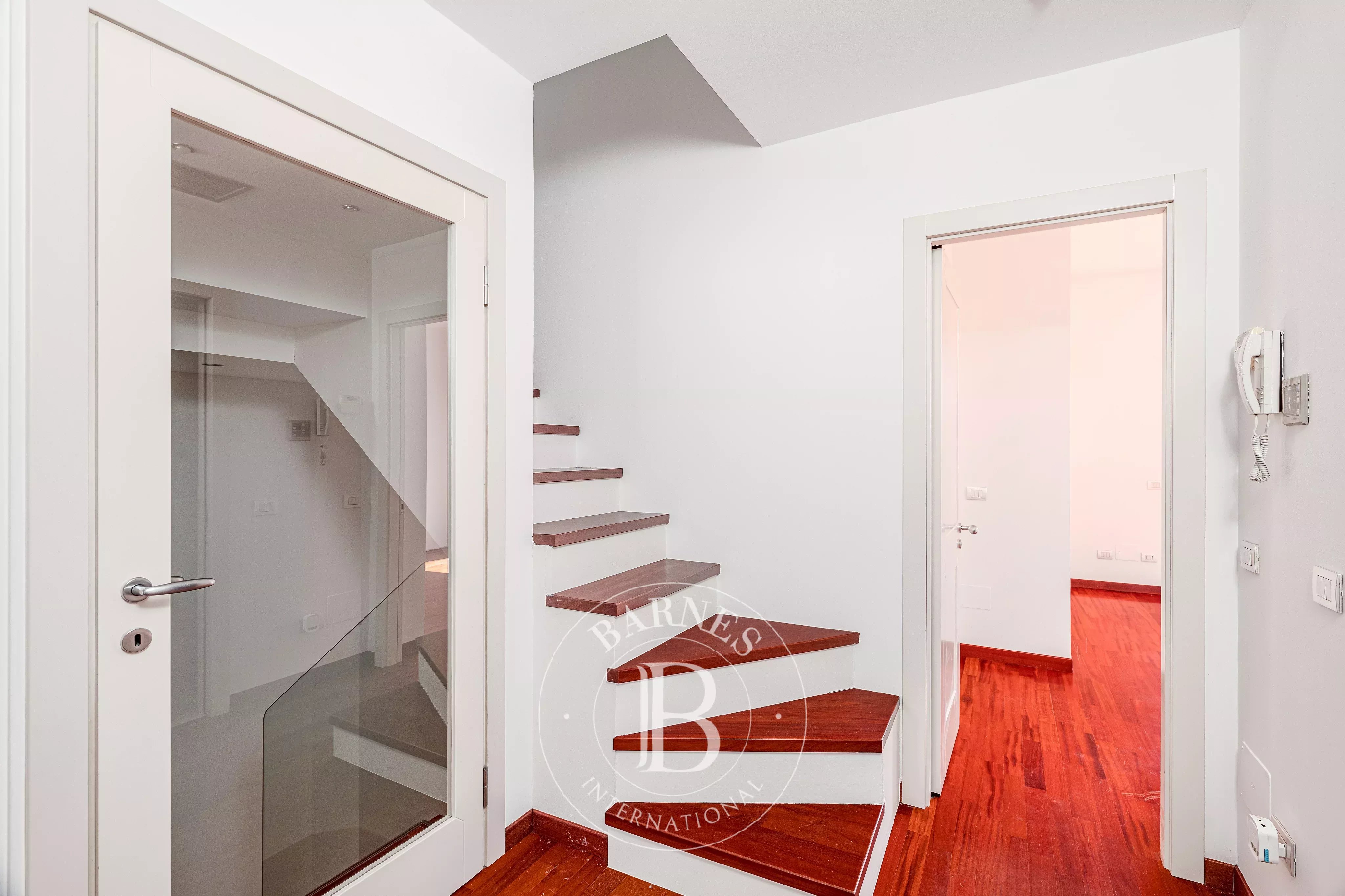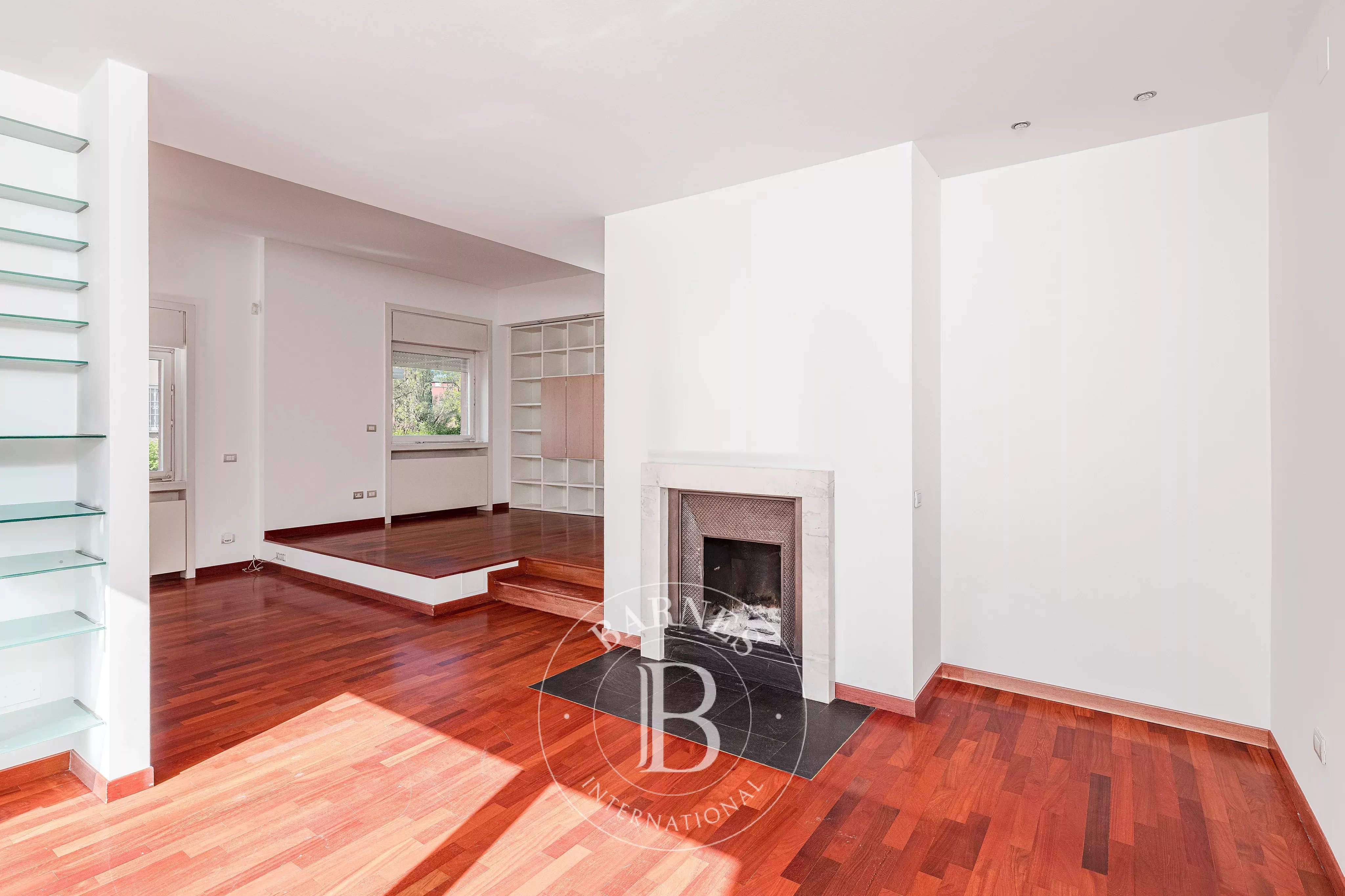 Les intérieurs, élégants et lumineux, offrent des espaces importants et parfaitement distribués : un salon raffiné avec cheminée et de grandes vitres donnant sur la verdure, une salle à manger et une cuisine entièrement équipée. La zone nuit comprend, au premier niveau, trois chambres, dont une suite parentale avec salle de bain attenante et dressing, ainsi qu'une deuxième salle de bain et d'autres espaces fonctionnels.