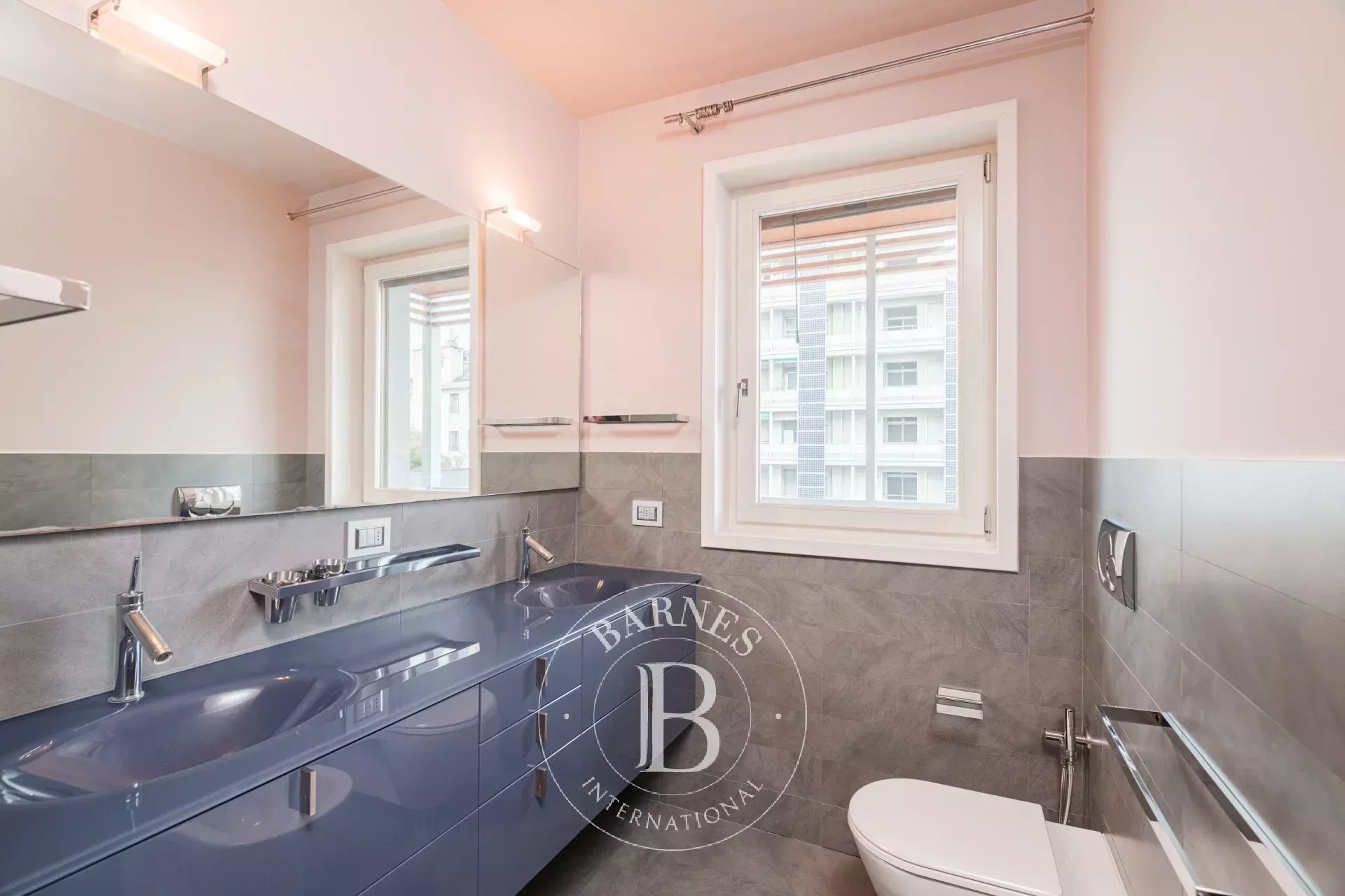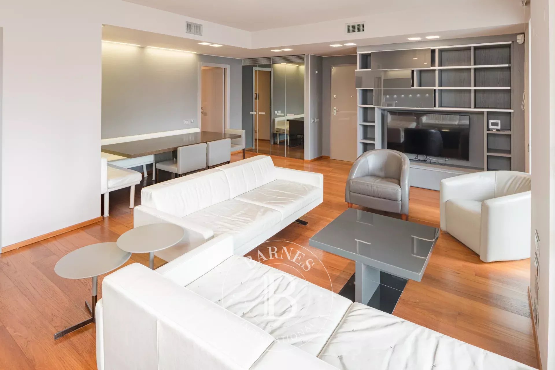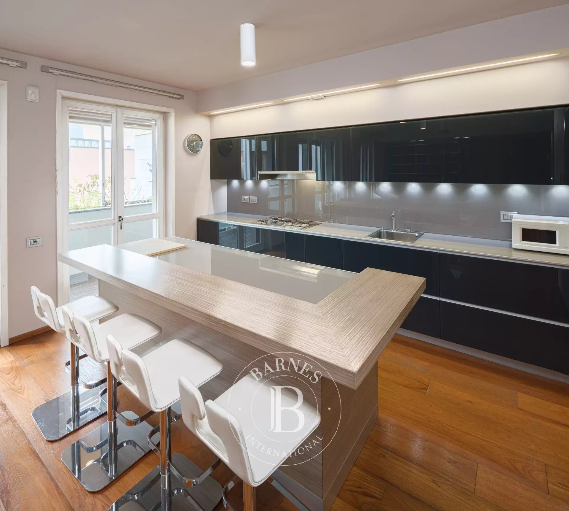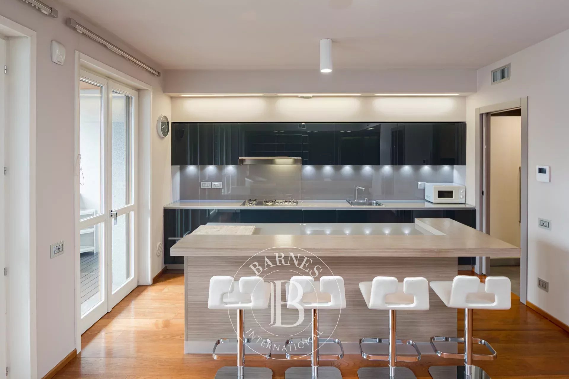 L'appartement est fini avec des matériaux et des meubles haut de gamme : portes Rimadesio, armoires Lema, bibliothèques De Padova, canapé Frau et appareils électroménagers Miele. Parquet, châssis en bois avec double vitrage, chauffage, climatisation et eau chaude centralisés.