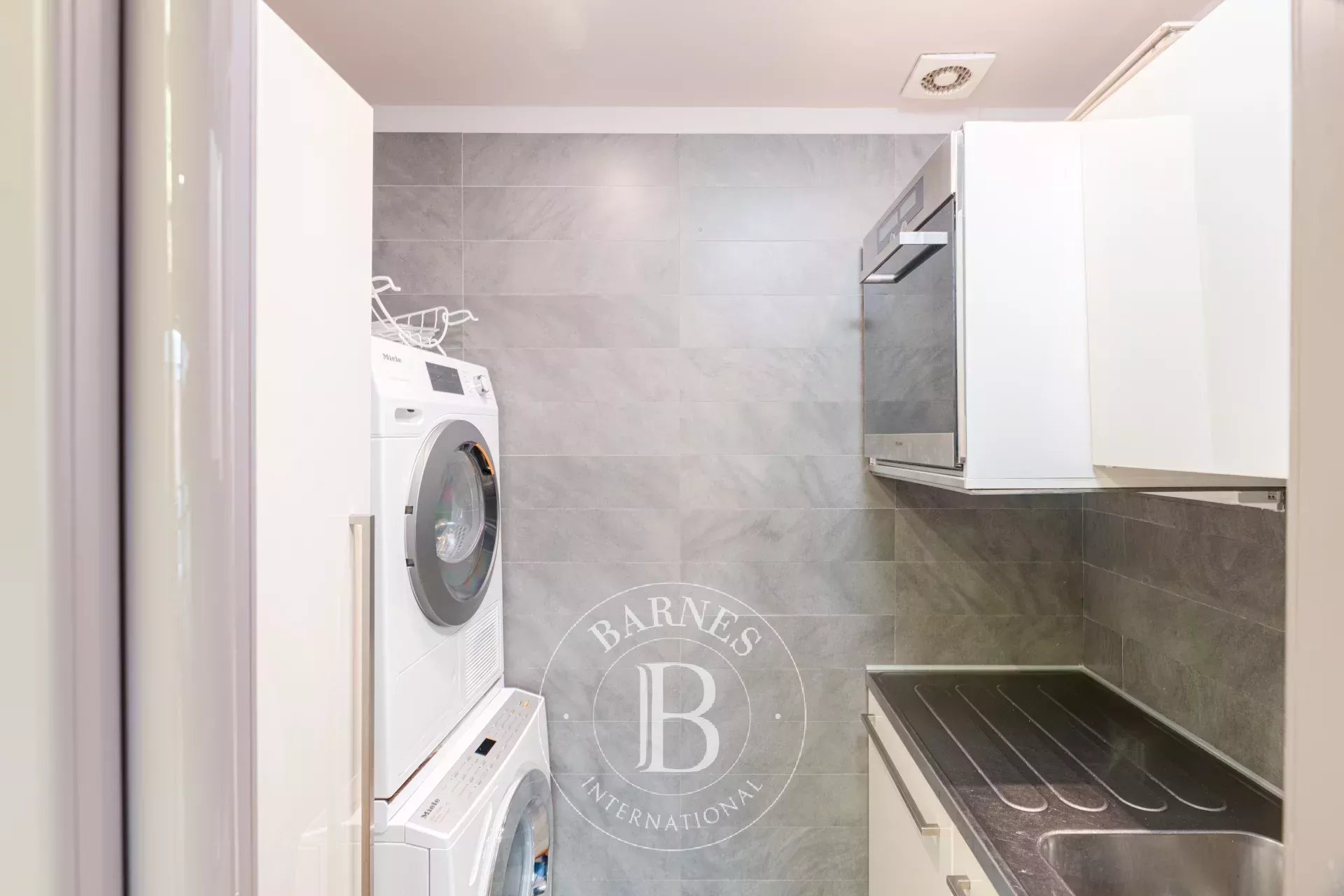 L'entrée mène à un grand double séjour avec une cuisine ouverte avec îlot, un environnement raffiné et accueillant qui s'ouvre sur un balcon loggia, idéal pour les moments de détente ou de convivialité en plein air. L'espace de vie est complété par une buanderie pratique adjacente à la cuisine.
