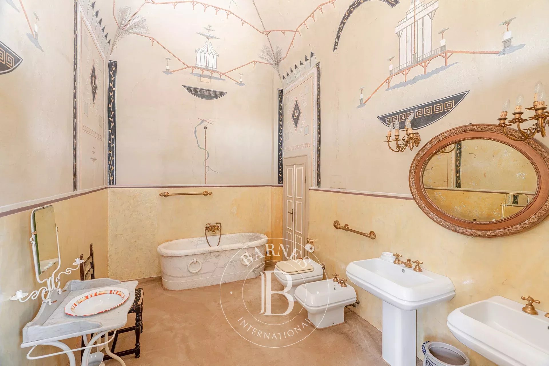 Particolarmente rilevanti sono la "stanza paese", attribuita a un seguace di Martinelli, il bagno in stile pompeiano e i monocromi dell’atrio eseguiti da Felice Giani.