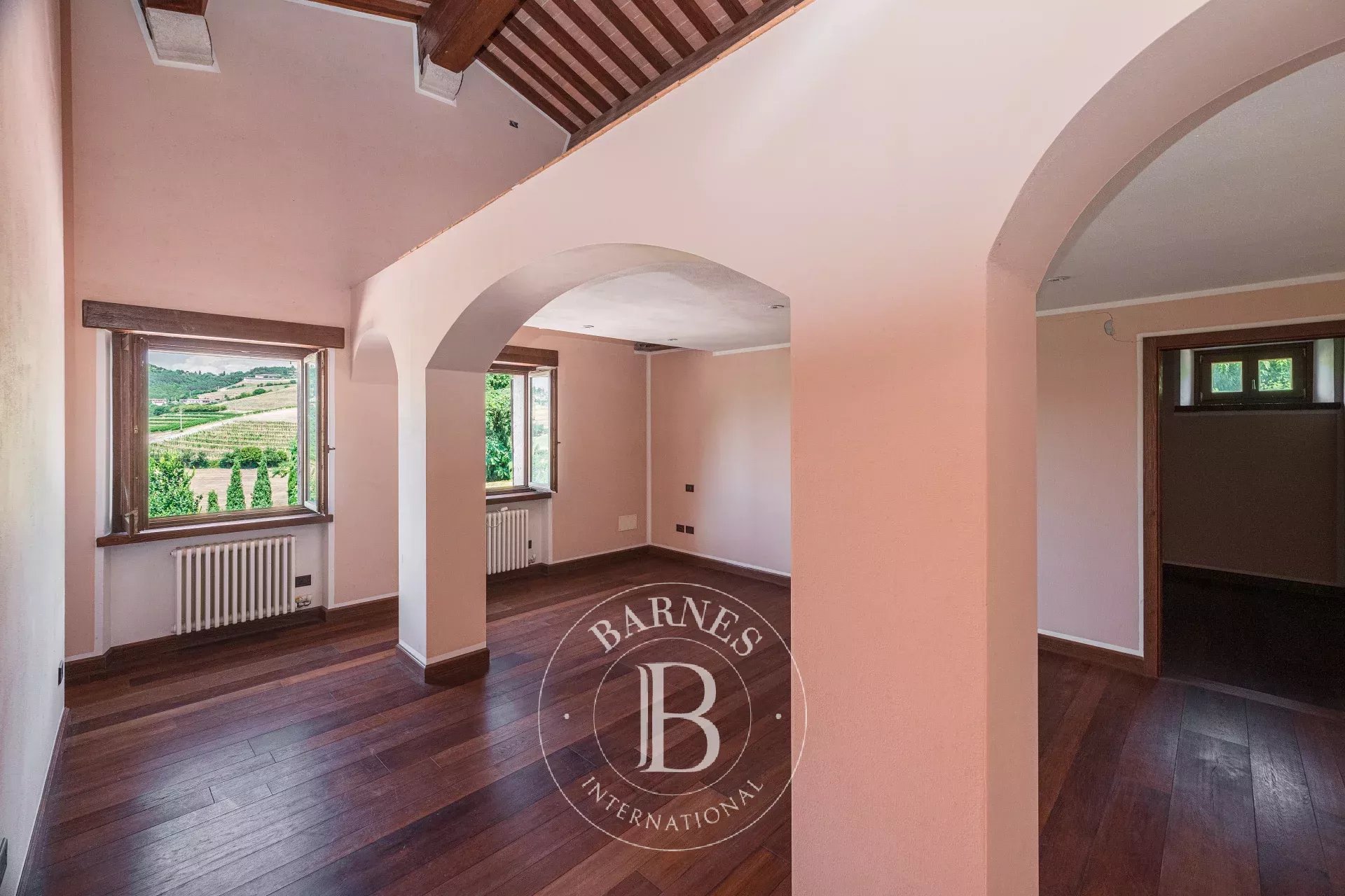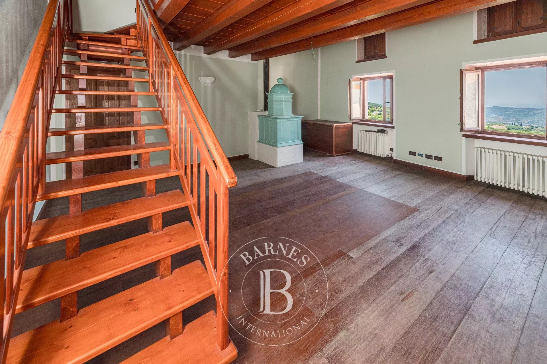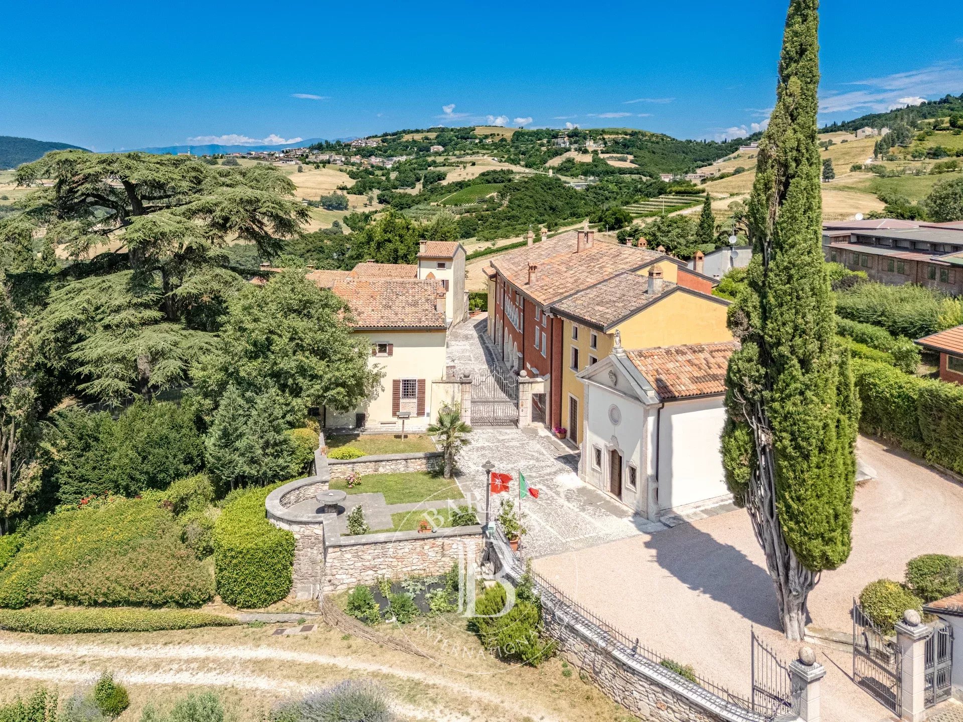 Barnes presenta in esclusiva, una prestigiosa dimora storica immersa nelle colline di Grezzana, in posizione dominante con una vista spettacolare sulla pianura veronese e sulle propaggini della Lessinia. L’antico nucleo del XV secolo conserva intatto il fascino romanico, con porticato e loggia, mentre un attento restauro ha restituito autenticità e raffinatezza ad ogni dettaglio. L’ingresso conduce a un ampio salone con tre arcate in cotto e affresco del pittore Zamboni, preludio ad ambienti eleganti arricchiti da pavimenti in legno massello, marmi pregiati a macchia aperta e finiture di altissimo livello. Gli spazi comprendono anche una cappella privata restaurata con cura, fabbricati rurali riconvertiti in residenze indipendenti, un ex fienile trasformato in unità abitative flessibili e ulteriori possibilità abitative con oltre 500 mq già progettati. Il parco, riportato al suo disegno originario, è un autentico giardino storico con viali selciati, alberi secolari e un laghetto alimentato da sorgenti naturali, che crea un’atmosfera unica e scenografica. Con oltre 2.800 mq coperti, questa proprietà è ideale come residenza privata, relais di charme o dimora di rappresentanza. Completano l’opportunità terreni altamente produttivi con annessa azienda agricola, disponibili per l’acquisto separato.