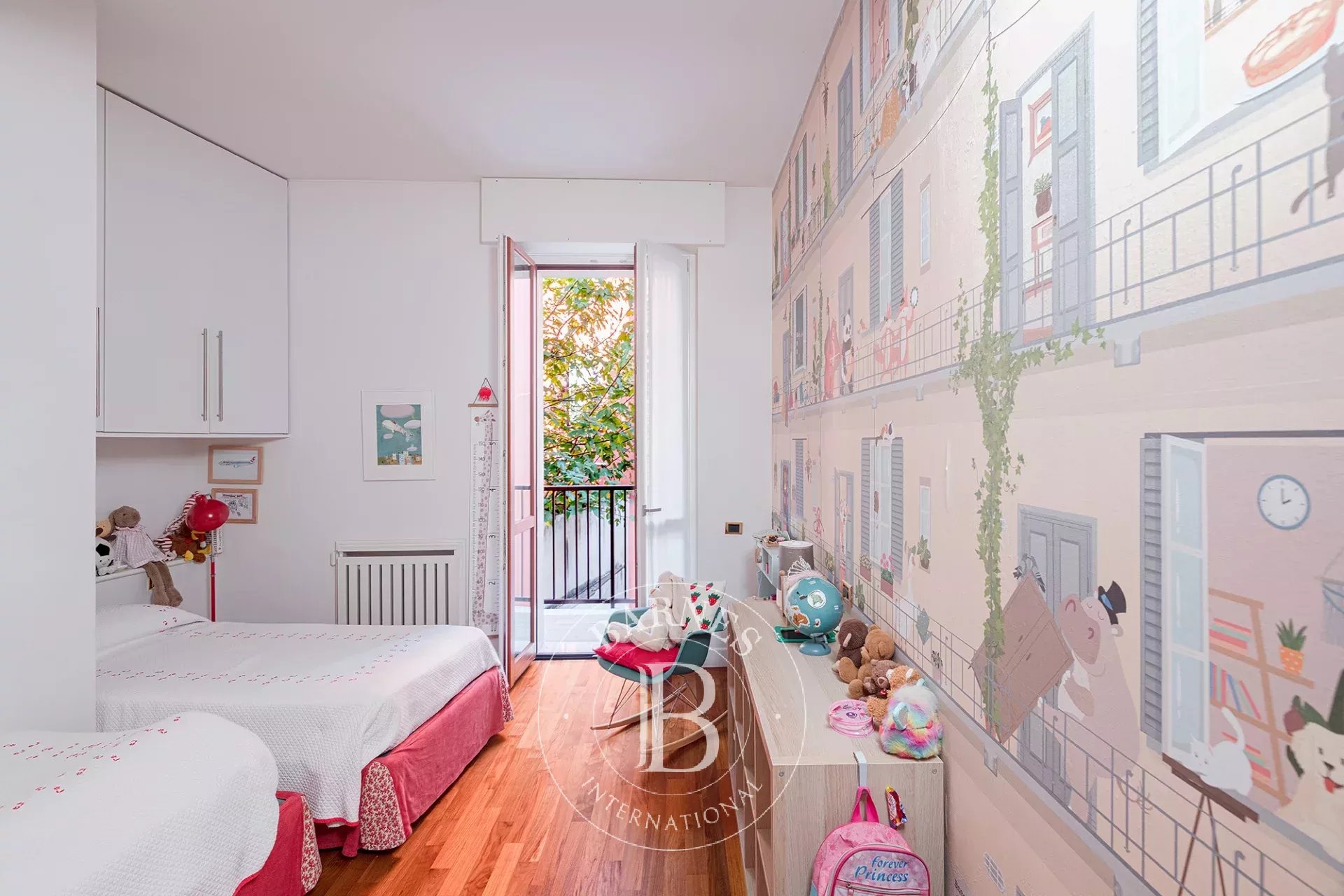 La zona notte si compone di due camere matrimoniali, di cui una con bagno en suite, una camera singola ed un ampio studio, due ulteriori bagni finestrati e tre balconi.