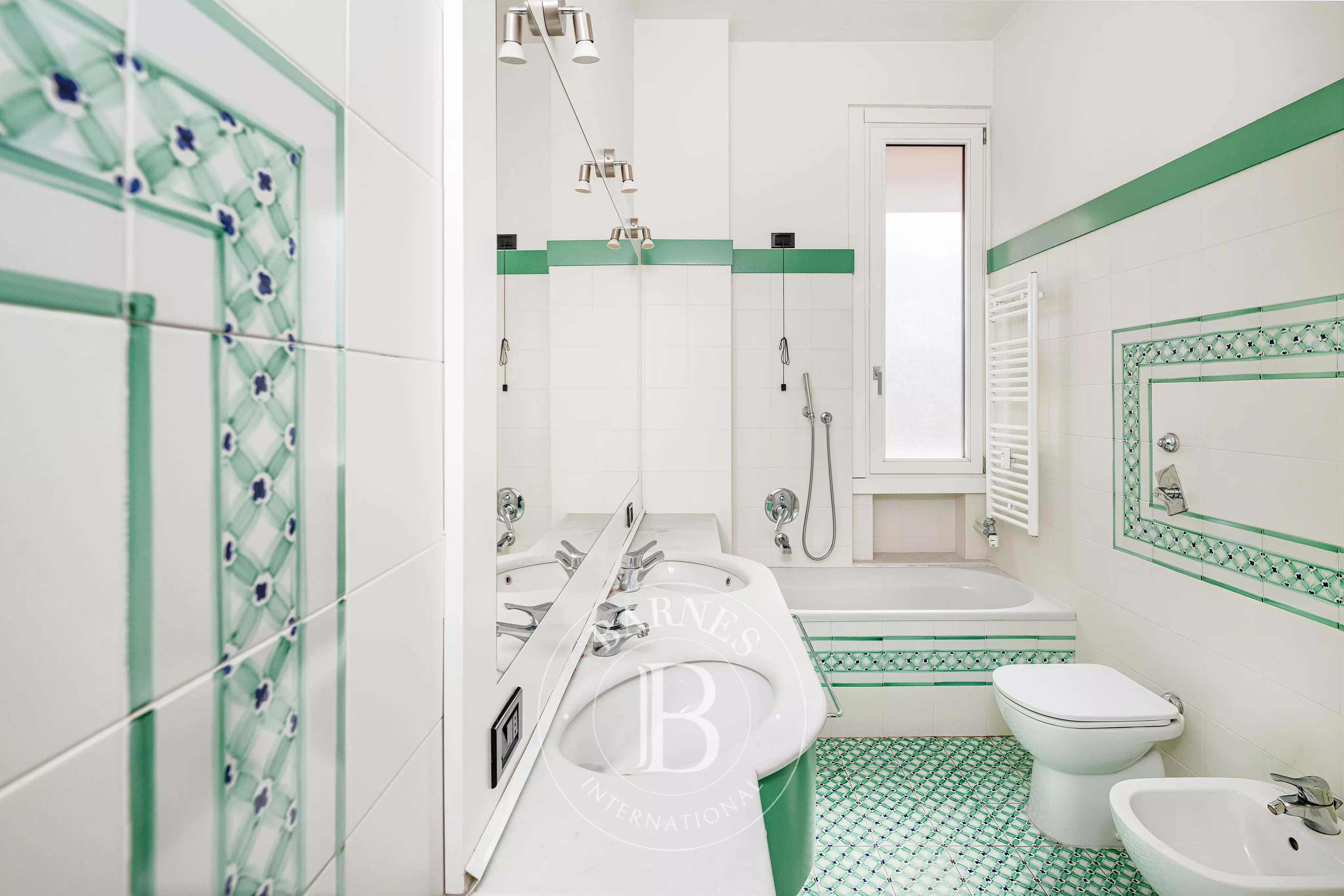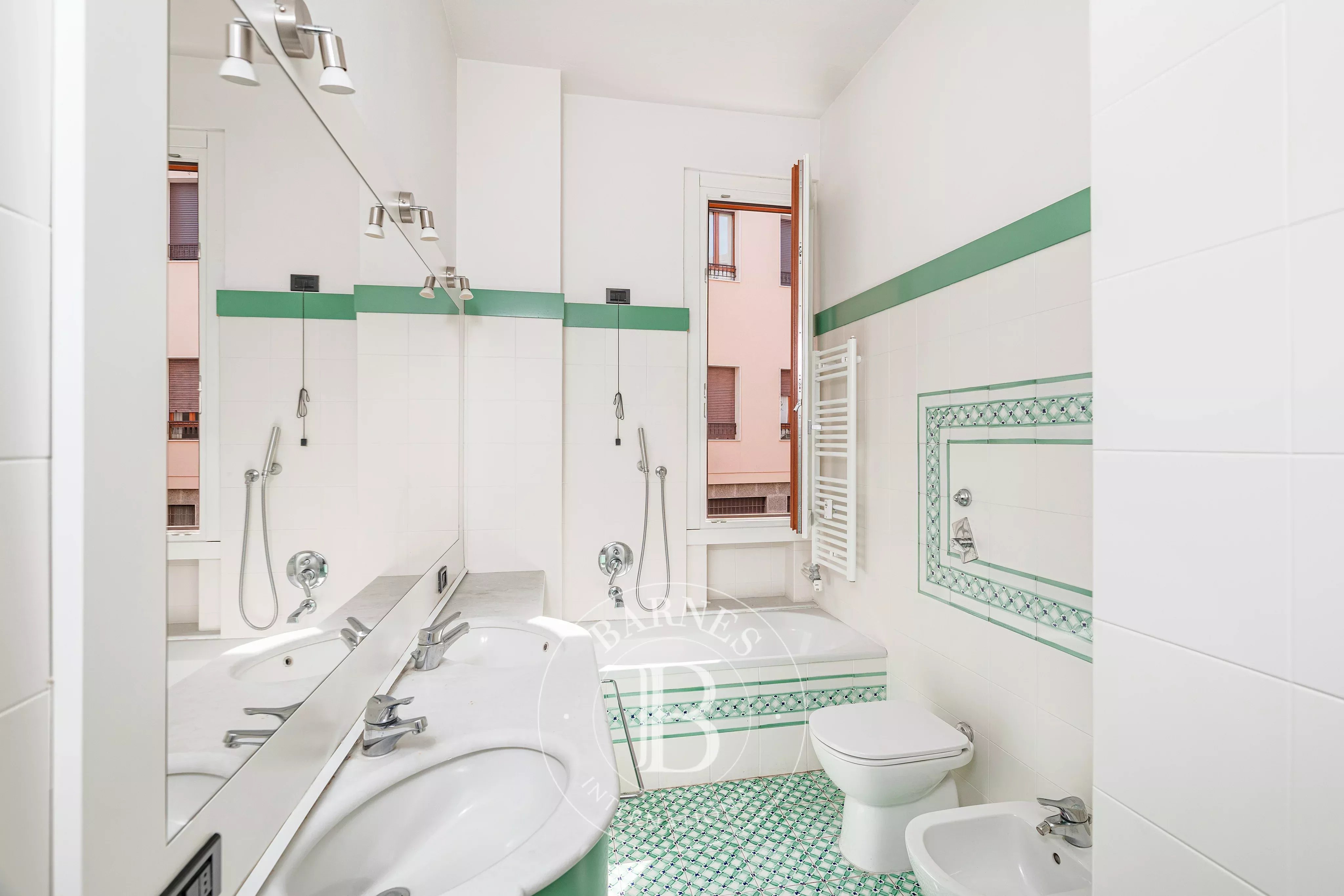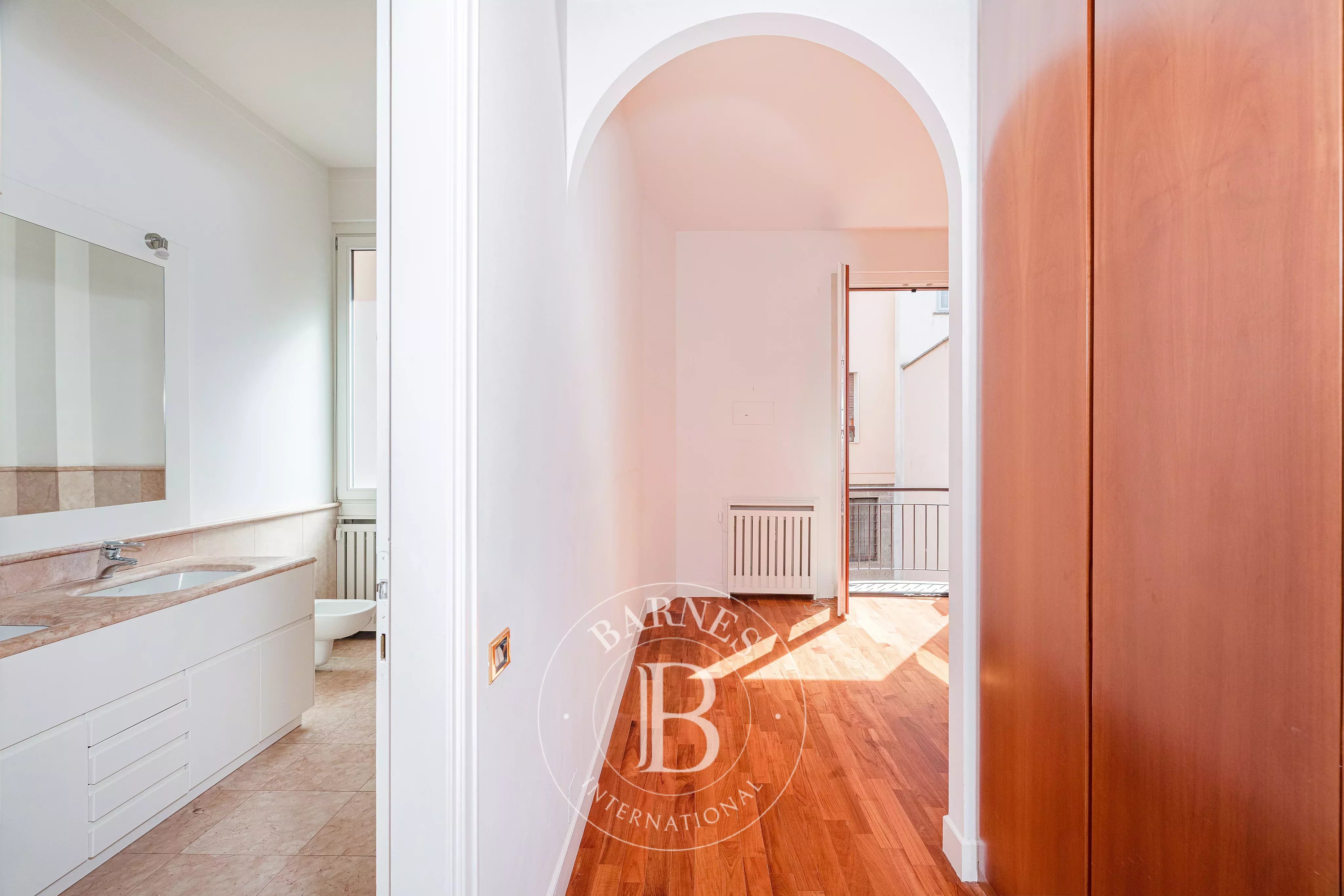 L’abitazione gode di grande silenziosità grazie alla doppia esposizione interna. Si apre su un ingresso che conduce a un ampio salotto con doppio affaccio e accesso ad un balcone e ad un terrazzino abitabile di circa 8 mq. La sala da pranzo, separata da un elegante arco, può ospitare comodamente 8–10 persone ed è ben servita dalla cucina, che beneficia di un secondo ingresso di servizio e di uno spazio lavanderia.